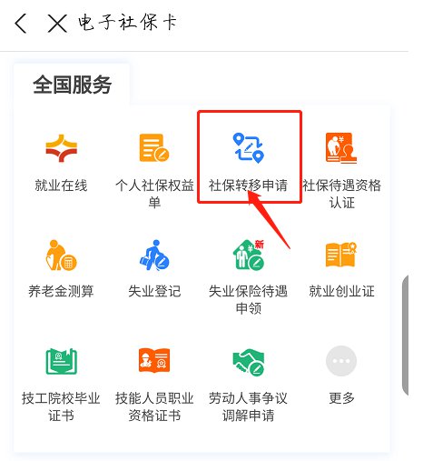 4、点击选择“社保转移申请”;