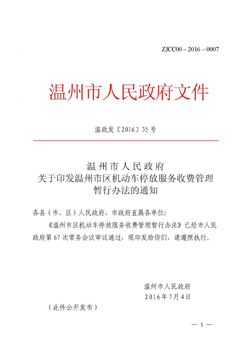 附件:《关于印发温州市区机动车停放服务收费管理暂行办法的通知》(温政发〔2016〕35号)