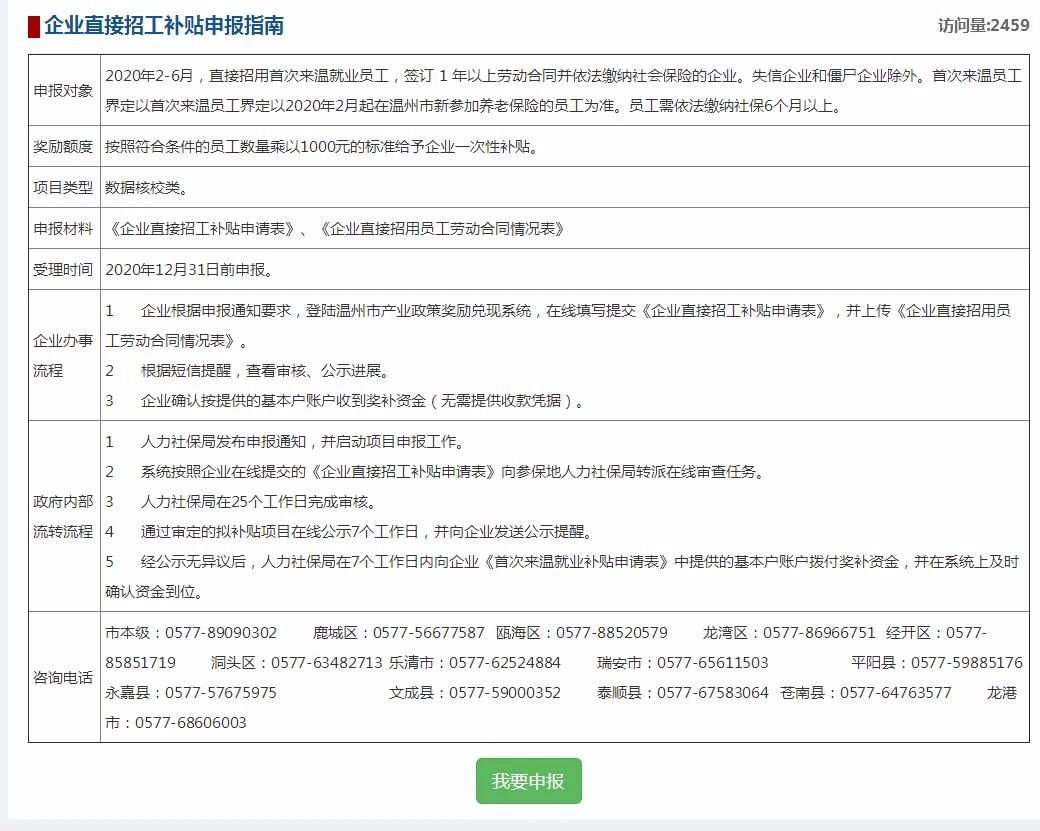 2020温州企业直接招工补贴线上申领方式(附入口)