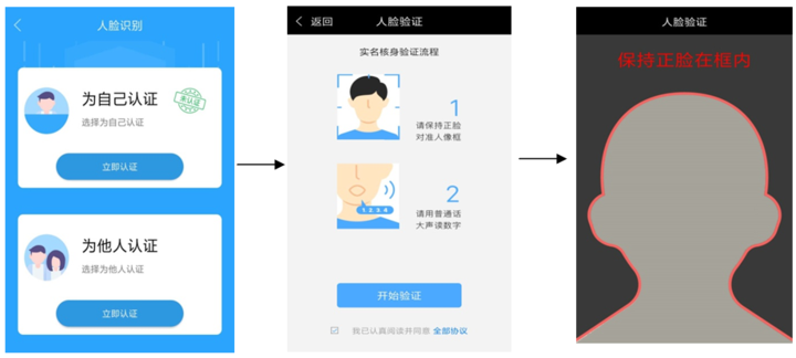 3.点击首页“养老待遇资格认证”,进入人脸识别,选择“为自己认证”或“为他人认证”,再将手机前置摄像头对准脸部,并阅读屏幕上显示的数字进行验证。