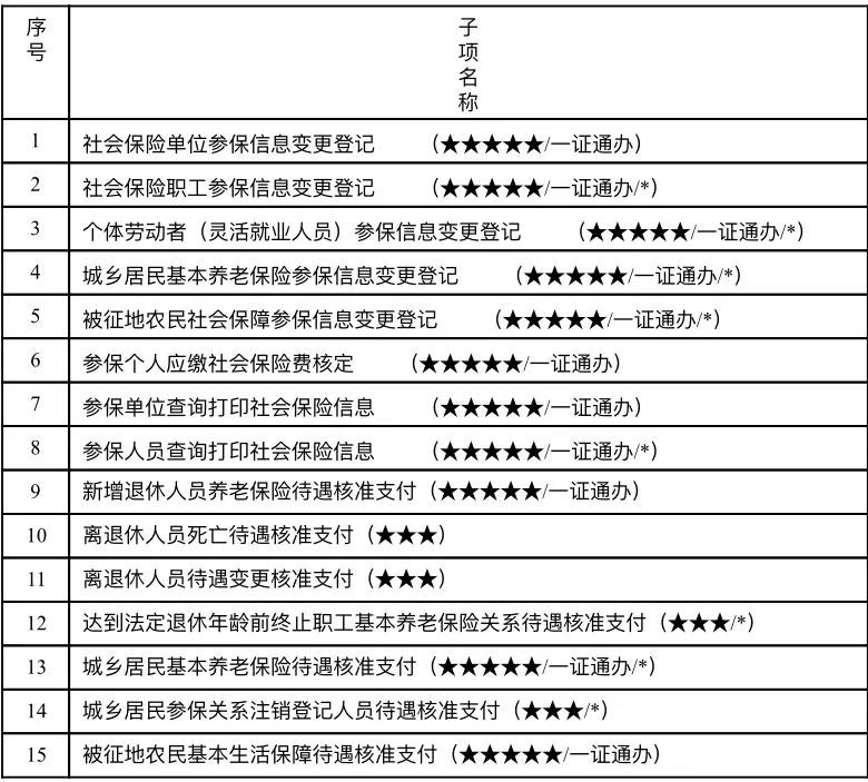 注:1:其中★表示一网通办星级;*号表示民生事项;一证通办表示“一证通办”事项