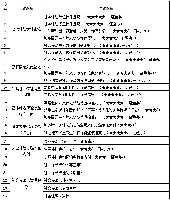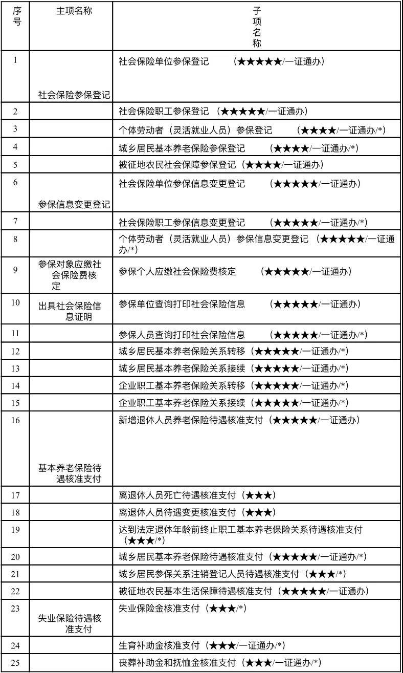 注:1: 其中★ 表示一网通办星级;* 号表示民生事项;一证通办表示“ 一证通办” 事项。