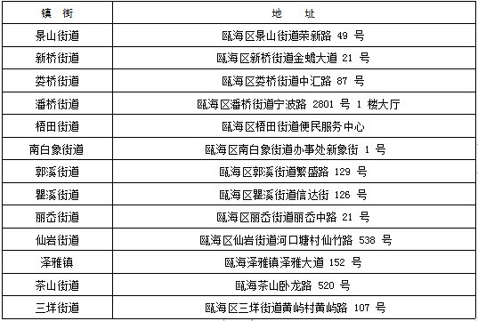 温州瓯海社保一次办网点地址大全 温州瓯海区办社保卡在哪里办