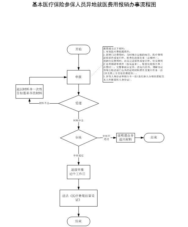 受理审核审批 | 12个工作日 | 温州市医疗保险管理中心 | 《温州市全民基本医疗保险办法》(温政发〔2018〕1号)第六十九条 异地长期居住、常驻异地工作(一年以上)的职工医保参保人员,办理异地安置手续后,可在当地指定医疗机构就医,所发生的医疗费用,回参保地零星报销的,按参保地医保待遇执行;异地长期居住的城乡居民医保参保人员办理异地安置手续后,在就医地发生的住院医疗费用,按第三十二条第(三)项规定执行。 |
