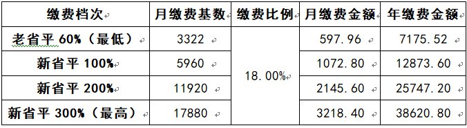 2020年7-12月灵活就业参保人员相关档次缴费基数及金额