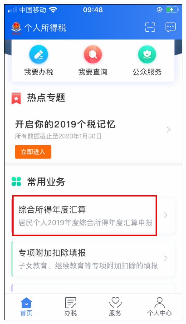 ① 打开“个人所得税”App,进入“综合所得年度汇算”。