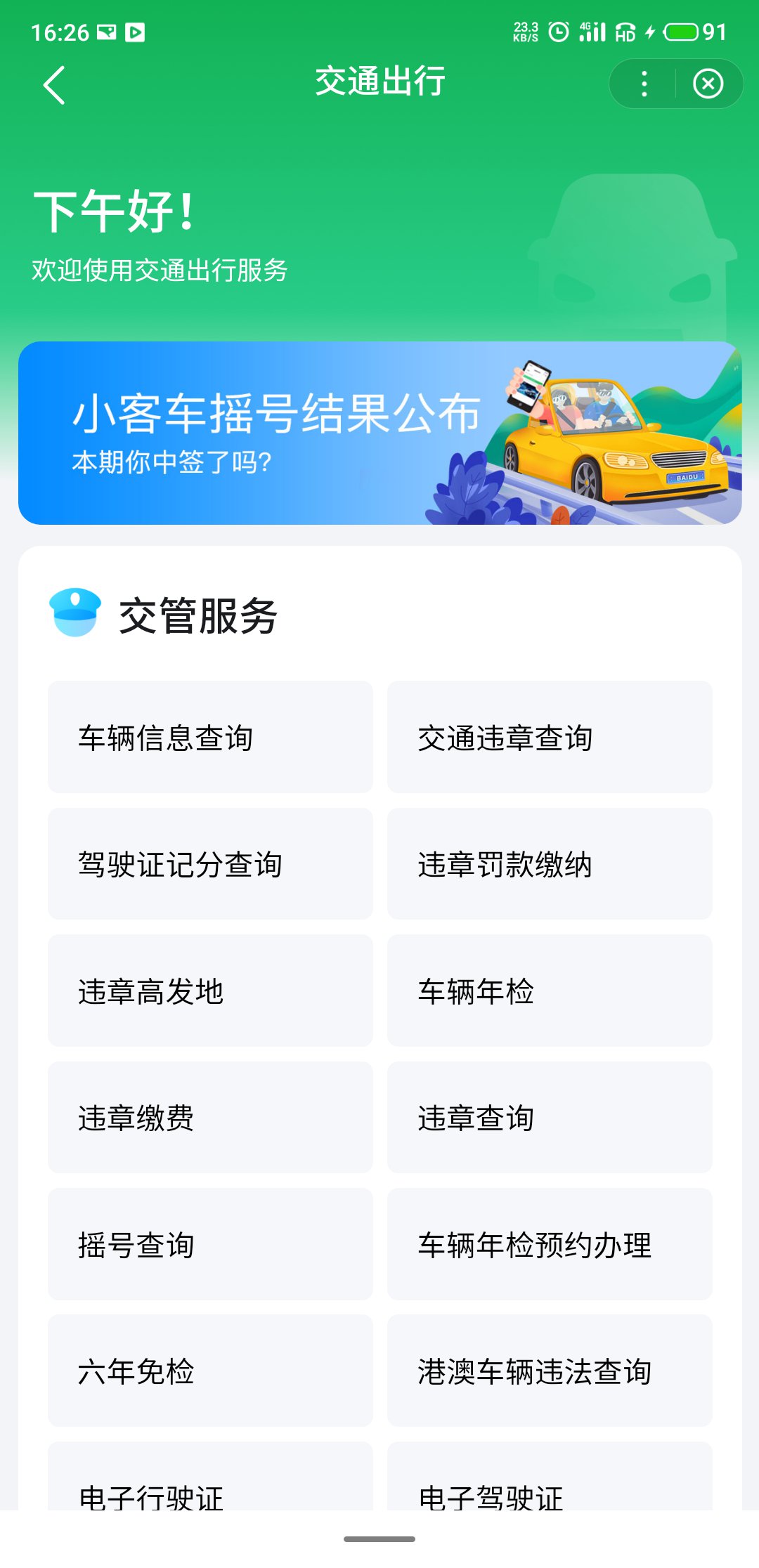 国家政务服务平台小程序:点击交管服务—交通违章查询—选择办理的小程序