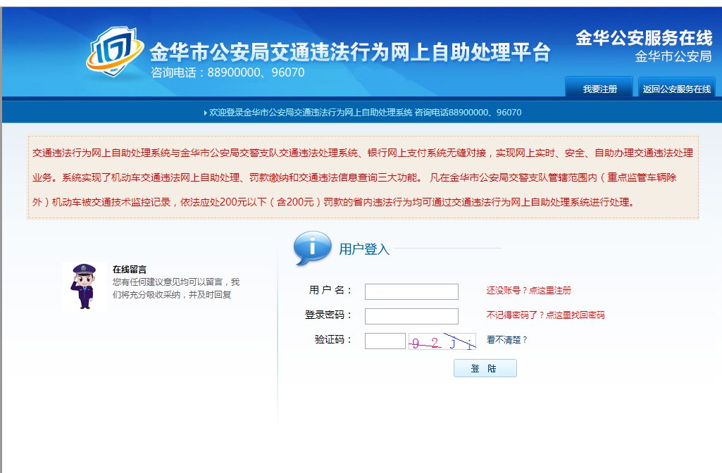 官网查询入口:http://bmfw.gaj.jinhua.gov.cn/Service/jxj2/Login.aspx