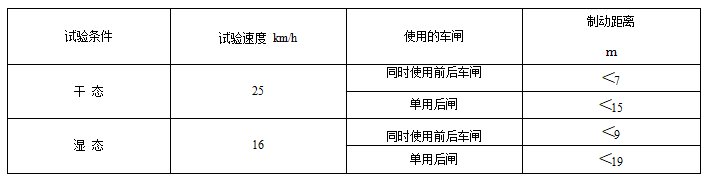 三、电动自行车制动性能应当符合表1%定,在相应的制动距离内平稳安全地停住: