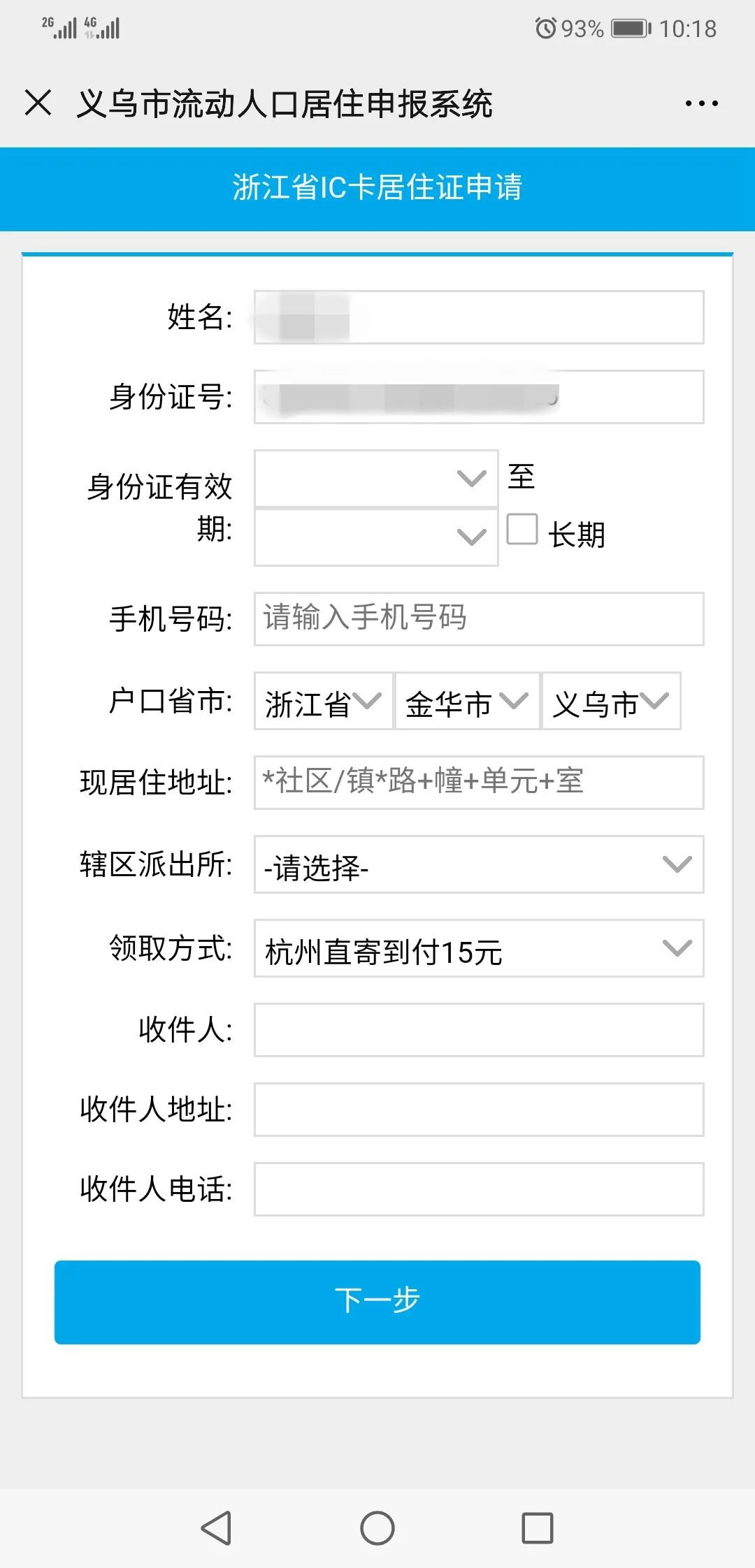 第2步:阅读申请注意事项后,上传身份证照片,并如实填写相关信息。