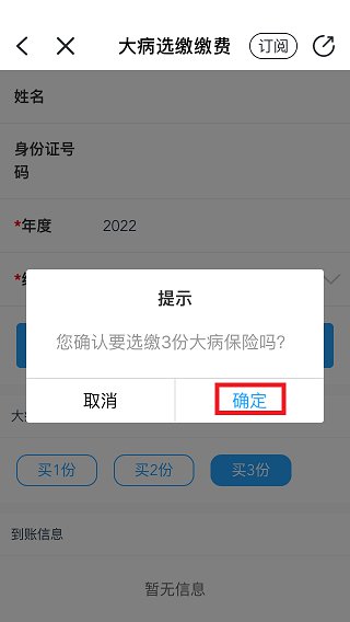 4、再选择2022年度大病保险选缴保费的份数。点击查询后,再点击“买3份”