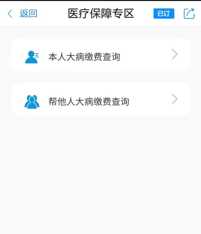 第四步:选择“本人大病缴费查询”或“帮他人大病缴费查询”