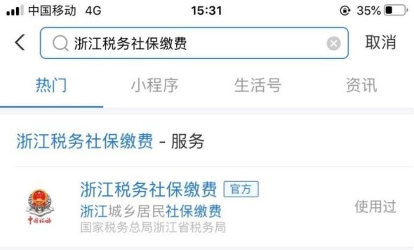 打开支付宝,首页搜索“浙江税务社保缴费”进入社保费自助缴费平台。