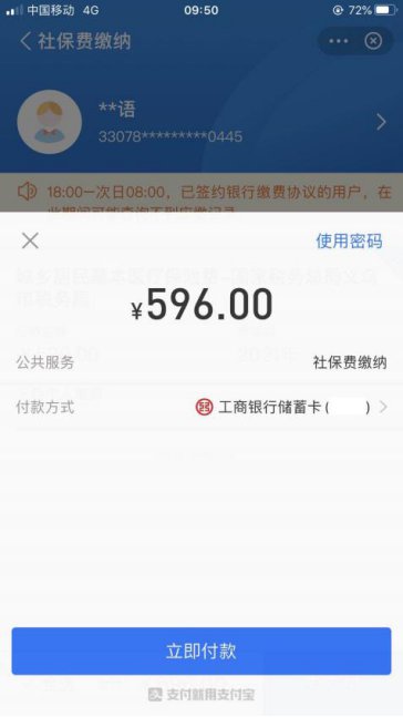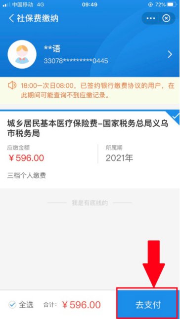 选择需要缴费的信息,点击“去支付”进入付款页面