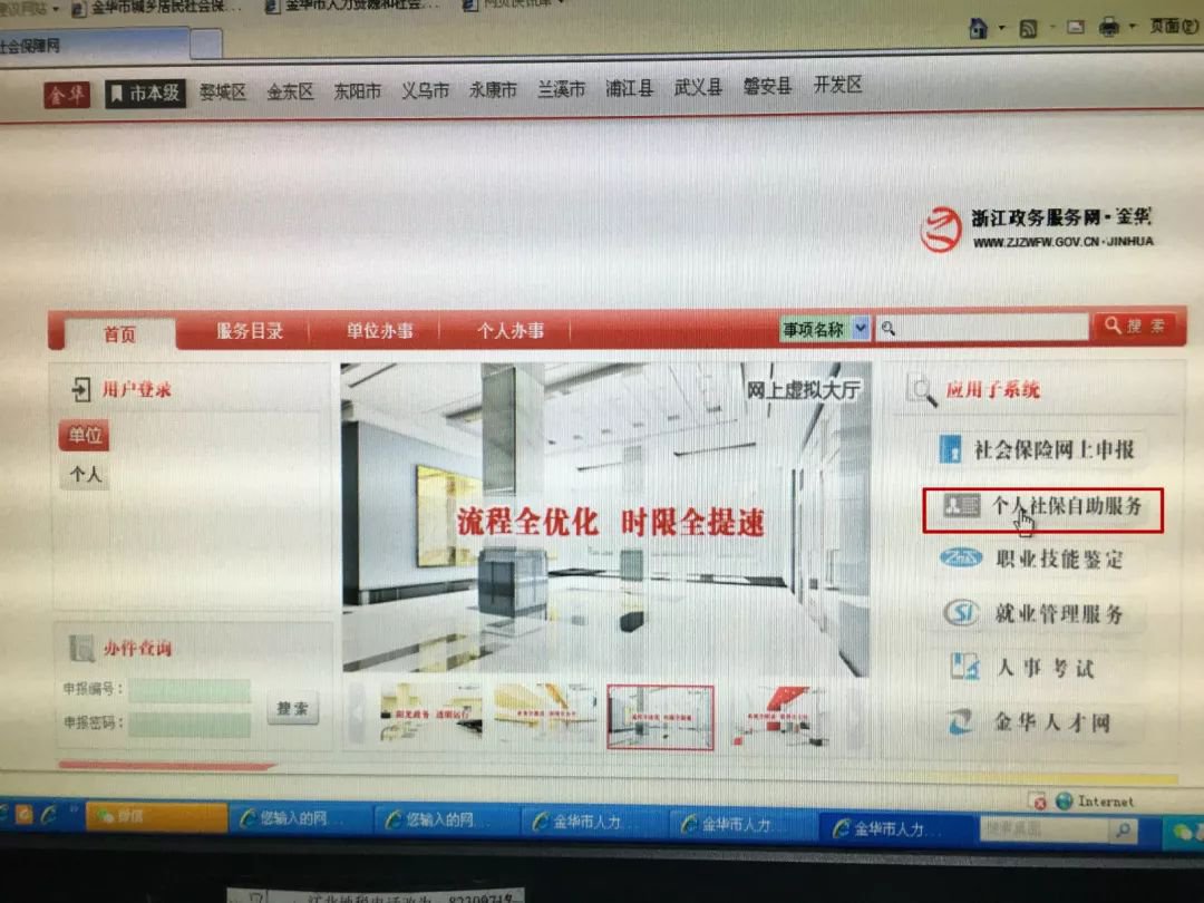 第一步,打开“金华市人力资源和社会保障局官网”,点击进入阳光政务网上办事大厅。