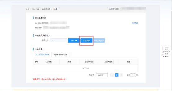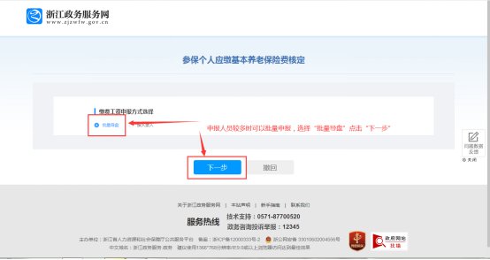 2、批量调整:点击“参保个人应缴基本养老保险费核定”模块→选择“批量导盘”点击“下一步”→点击“下载模板”→在下载的“工资申报导入模板”表格中“上年度月工资收入(元)”栏填写需要申报的缴费基数保存表格(只需修改此列,其他内容及表格格式请勿修改)→“导入”模板→确认无误后点击“下一步”按钮保存即可。