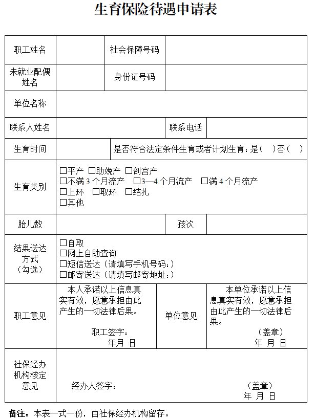 上方《生育保险待遇申请表》图片仅供参考