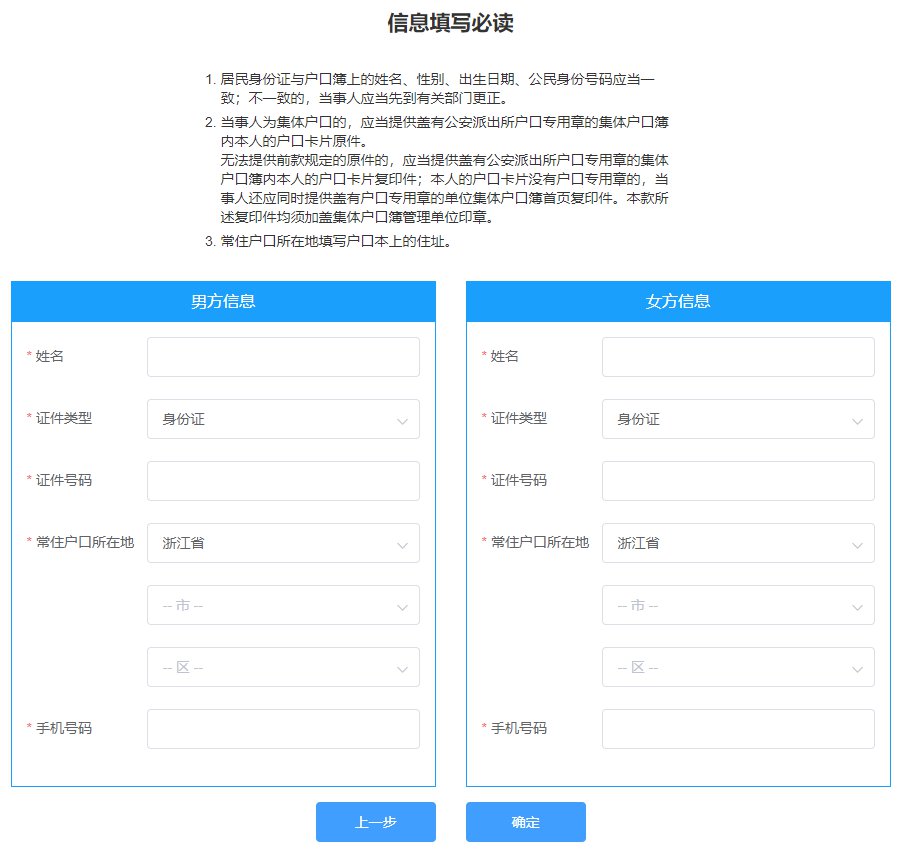 居民身份证、军人证件和军人婚姻登记证明上的姓名、性别、出生日期、公民身份号码应当一致;不一致的,当事人应当先到有关部门更正。