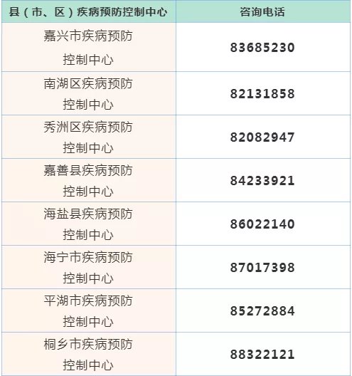 嘉兴市各县(市、区)疾病预防控制中心咨询电话