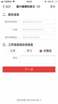 填写居住和工作/学习信息(仅居住、居住+工作、居住+学习三种状况)