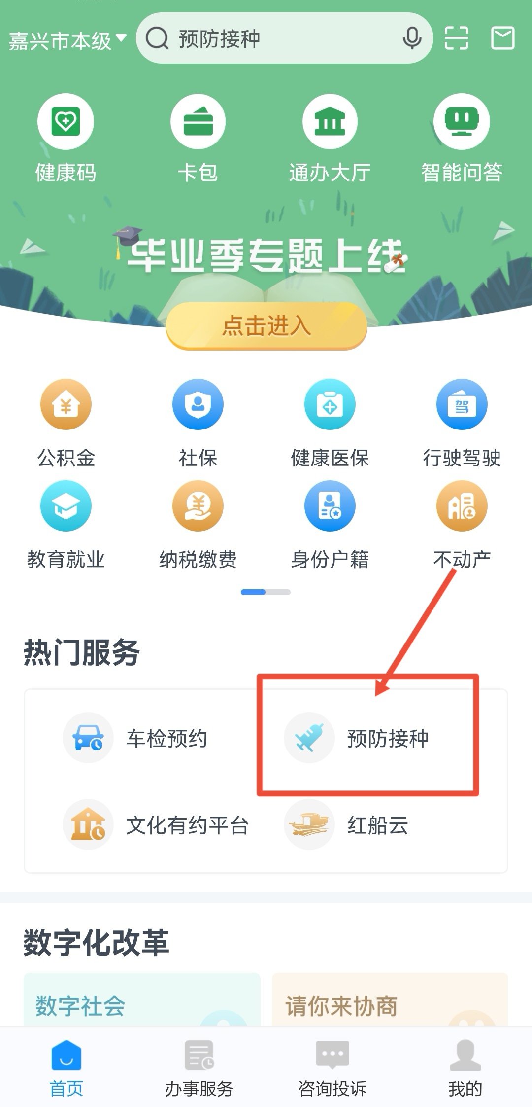 通过浙里办APP或支付宝登录预防接种应用后,选择摇号疫苗。