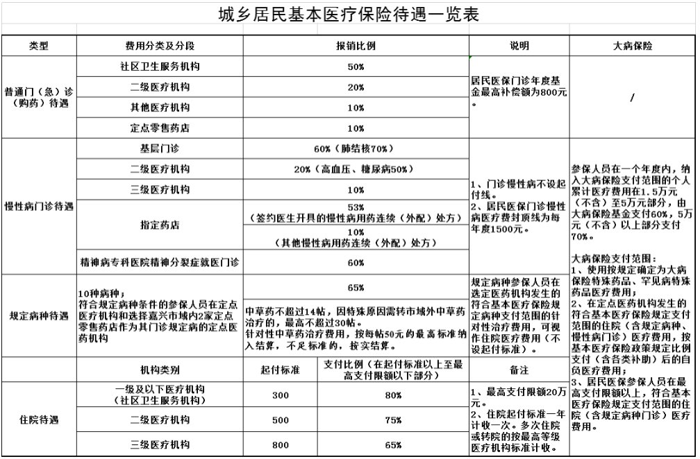 三、嘉兴城乡居民医疗保险待遇一览