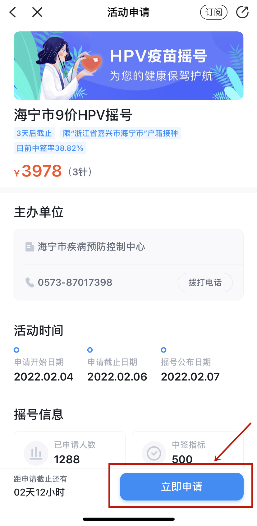 步骤三:浏览活动页面没有问题点击“立即申请”。
