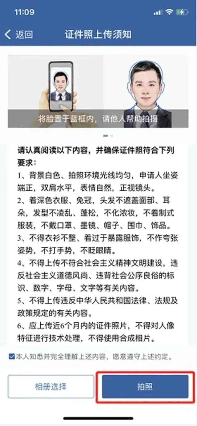 (三)使用相册的证件照片申领。