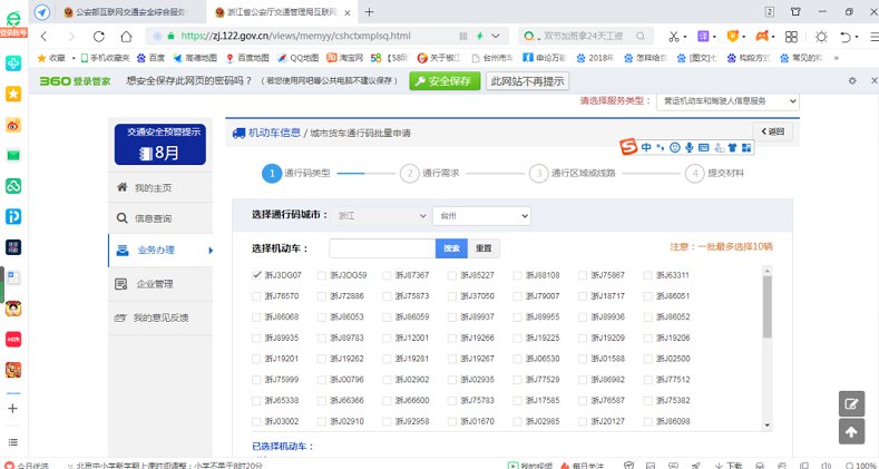 台州轻型货车通行证单位申请网上操作指南