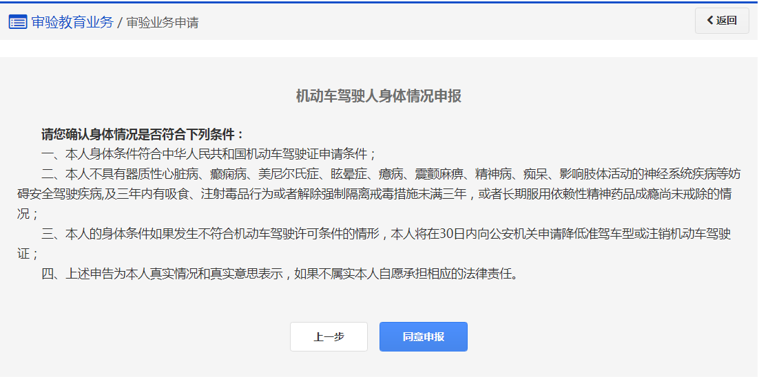 步骤2:【机动车驾驶人身体条件申报】