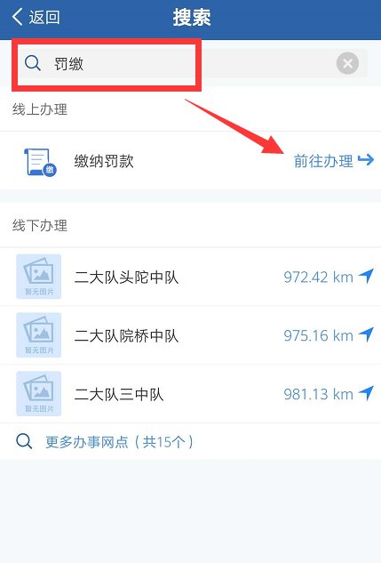 2、在搜索框输入“缴纳罚款”