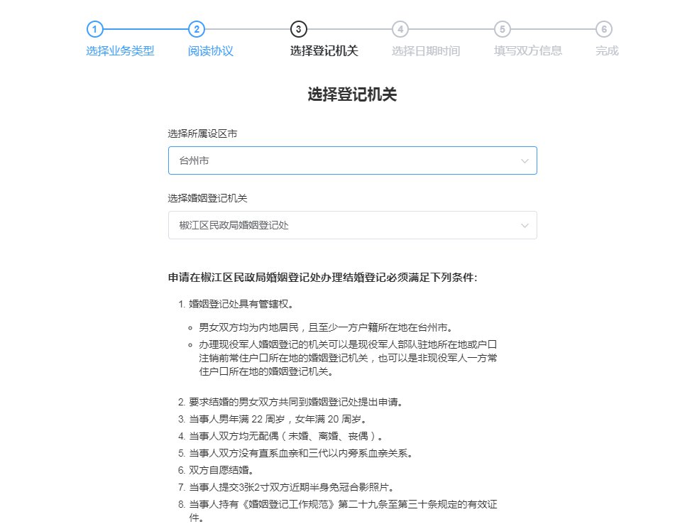台州市结婚登记网上预约流程(台州结婚证办理咨询)