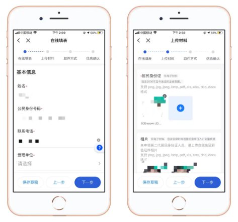 3、在线填表,上传材料