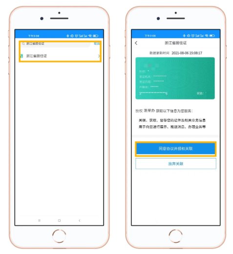 搜索“浙江省居住证”,同意协议并授权关联