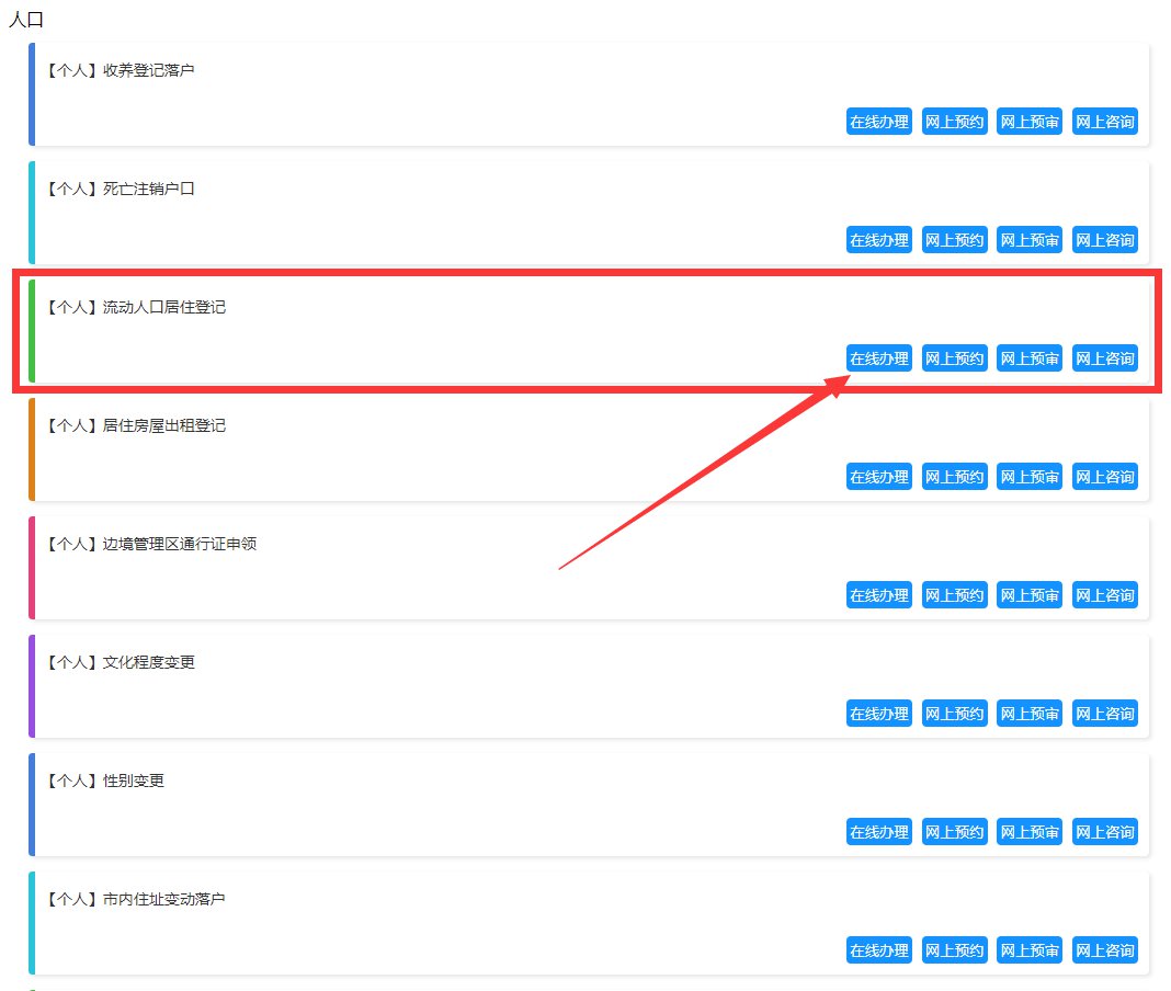 1、点击进入台州公安网上办事大厅,点击“人口”