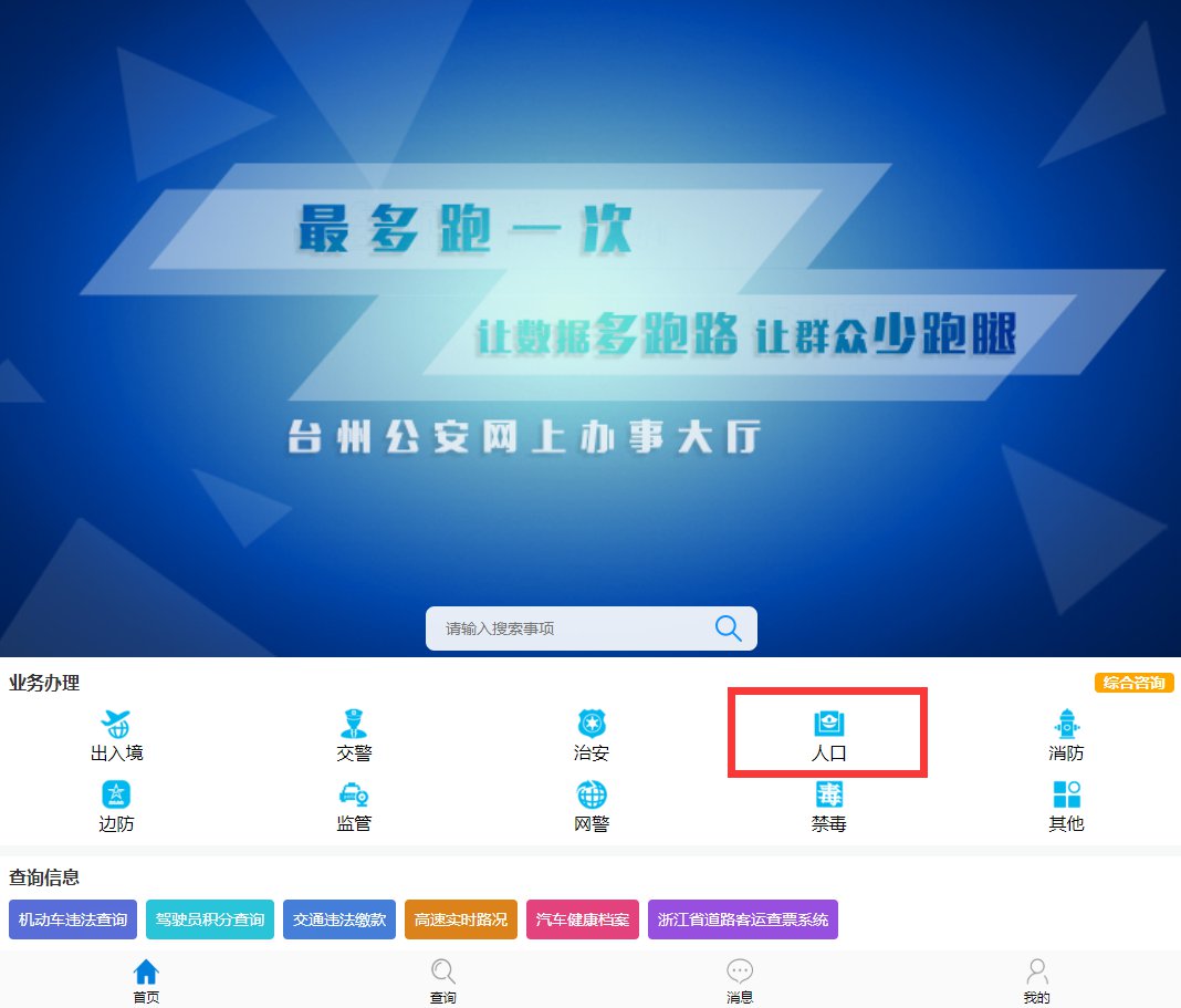 1、点击进入台州公安网上办事大厅,点击“人口”