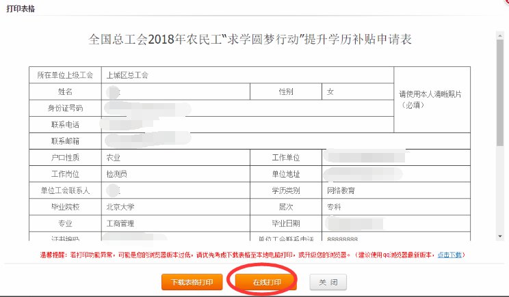 2、在线打印申请表。