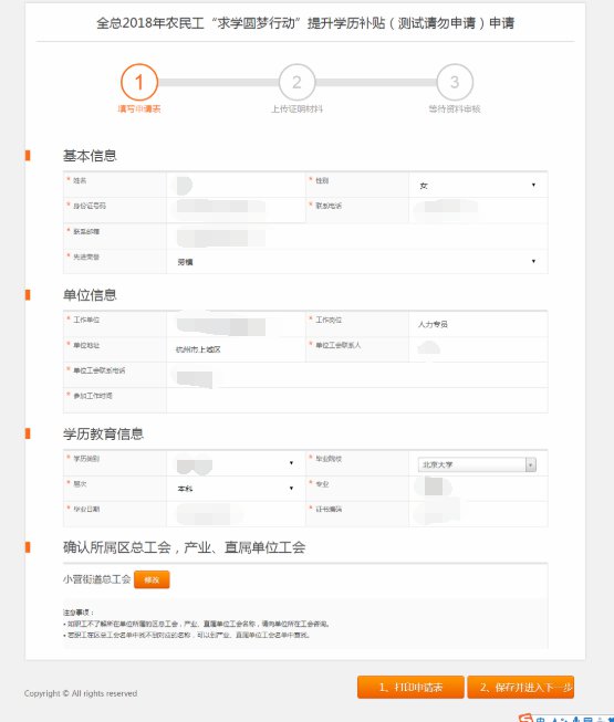 2、携带打印好的申请表、身份证、缴费凭证(收据或发票)、毕业证书原件及复印件,到所在单位工会查验。