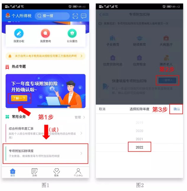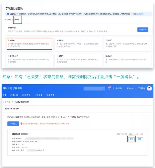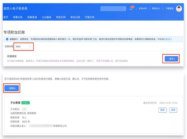 ①如您2021年已填报过专项附加扣除信息,并需要在2022年继续享受,请及时关注相关信息是否发生变化(官网首页专项附加扣除填报,选择扣除年度2022,快捷填报栏一键带入),如有变化,请及时修改。
