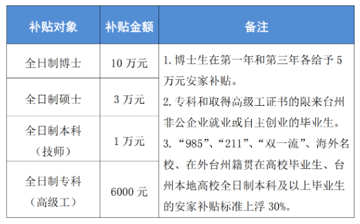 台州高校毕业生安家补贴申报指南 台州毕业生补贴政策