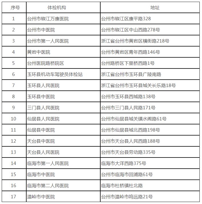 台州驾照考试体检项目及医院地址(台州驾驶员体检医院)
