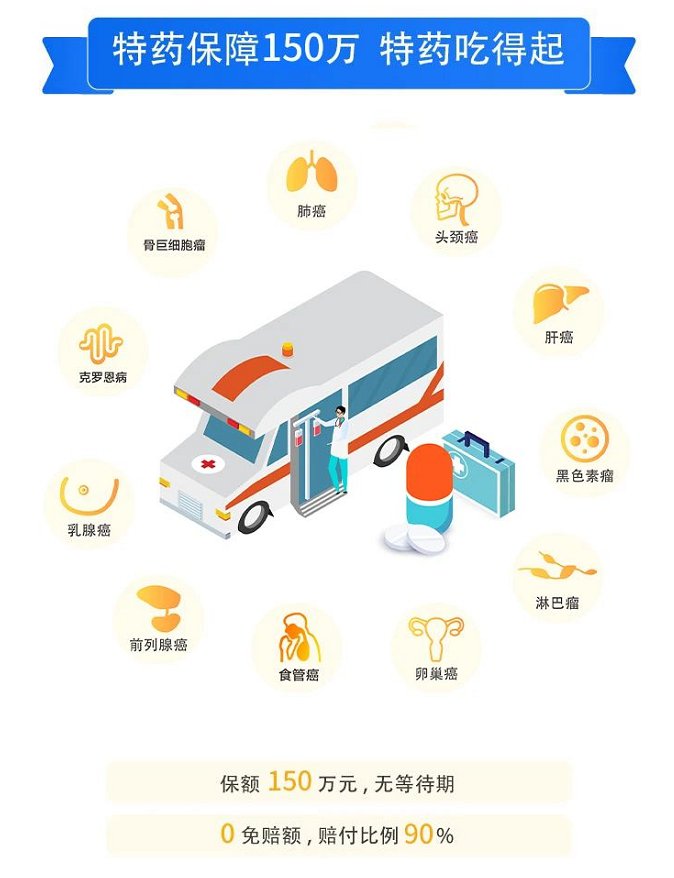 (二)20种恶性肿瘤特定药品费,上限150万。