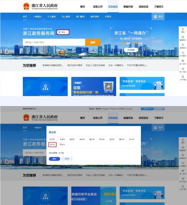 访问网址:http://www.zjzwfw.gov.cn或者百度搜索“浙江省政务服务网”打开“浙江政务服务网”界面,左上角选择“台州市”, 点击网站右上角“登录”按钮,选择“法人登录”。社会保险网报系统如有法人数字证书的可以选择法人数字证书登录,未向工商部门申领法人数字证书的单位用户,点击“去注册”。