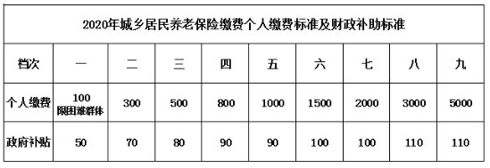 2020台州城乡居民养老保险个人缴费标准