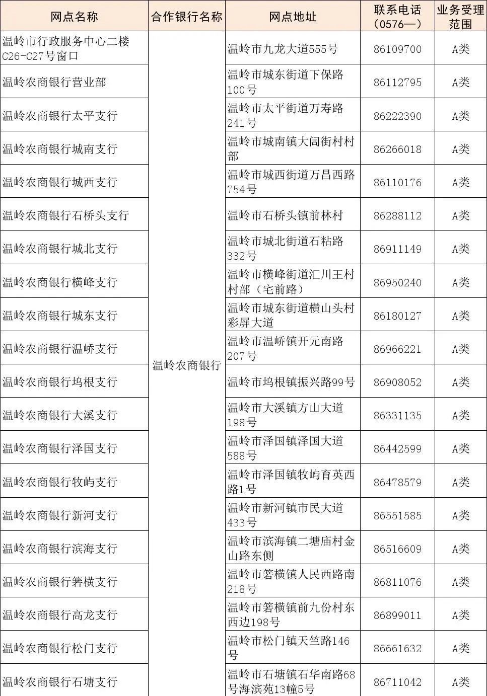 2020温岭市社会保障市民卡办理地点一览