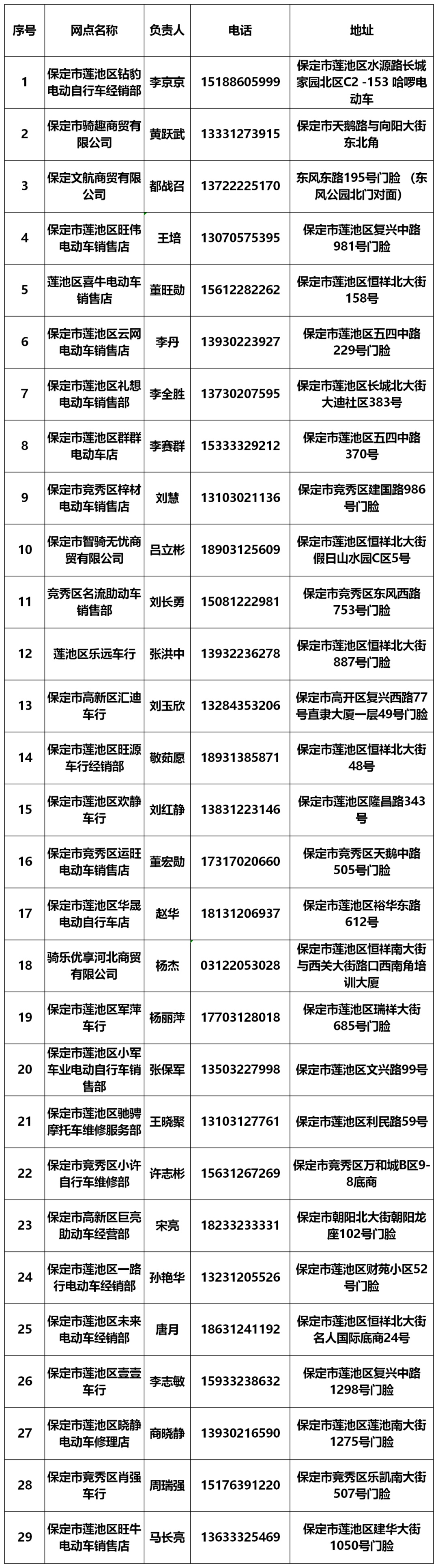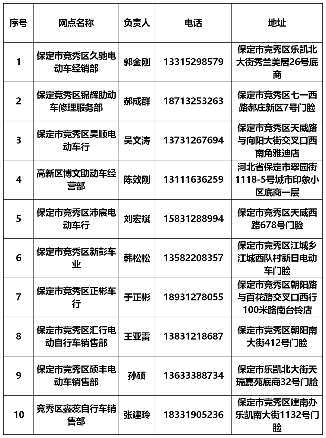 保定主城区电动自行车登记服务网点 保定主城区电动自行车登记服务网点电话