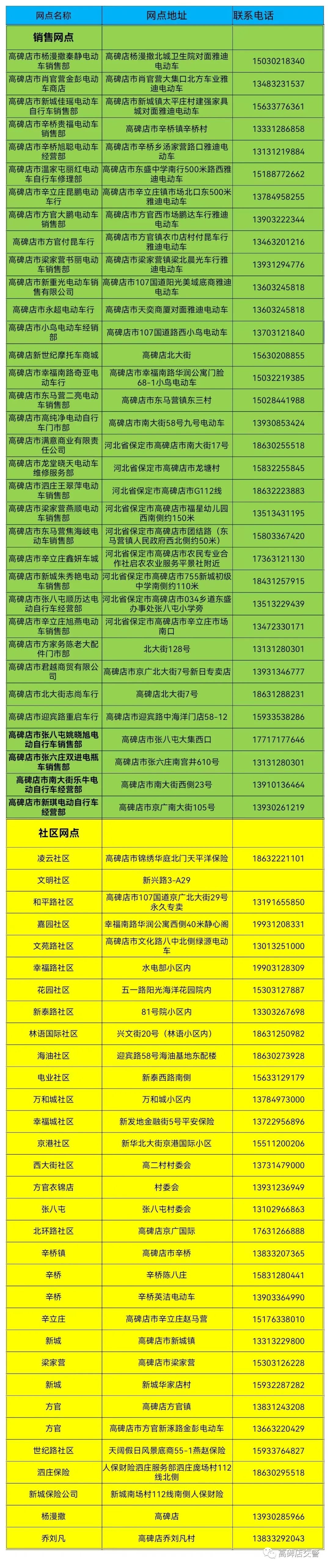 现将服务网点地址及咨询电话公布如下: