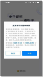 初次进入弹出对应服务协议和隐私政策,用户同意后进入APP。