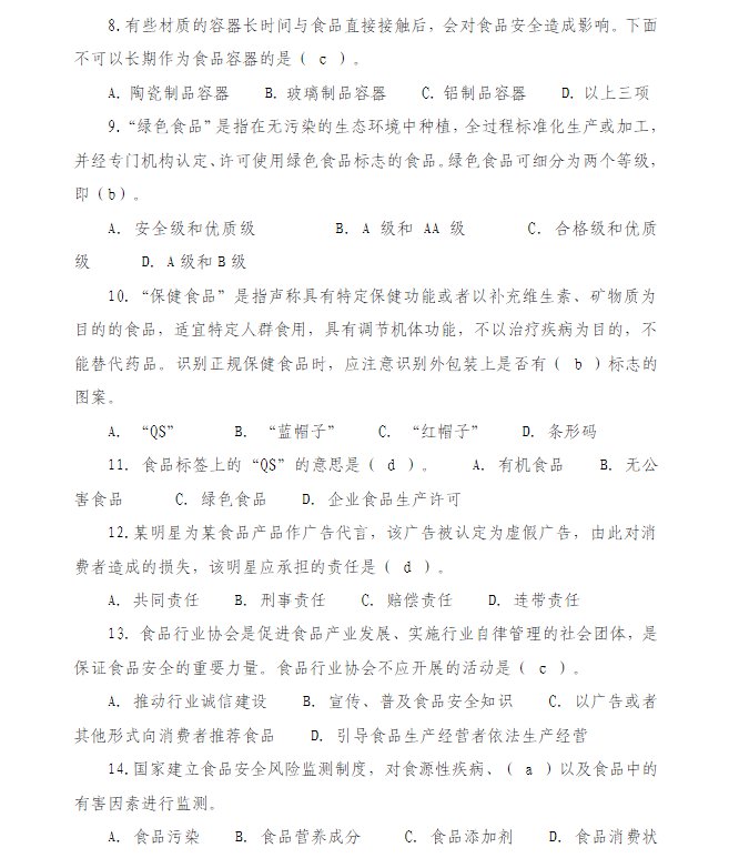 2021河北省食品安全网络知识竞赛题库: