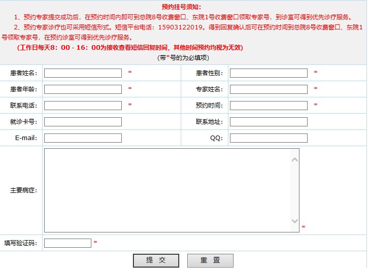 第二步:进入患者服务页面后,点击网页左下角的“预约挂号”选项,按要求填写必要信息。